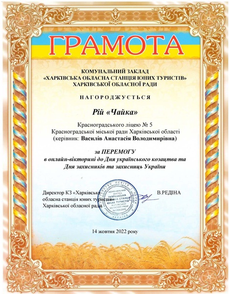 Вітаємо рій "Чайка" за перемогу в онлайн-вікторині до Дня українського козацтва.